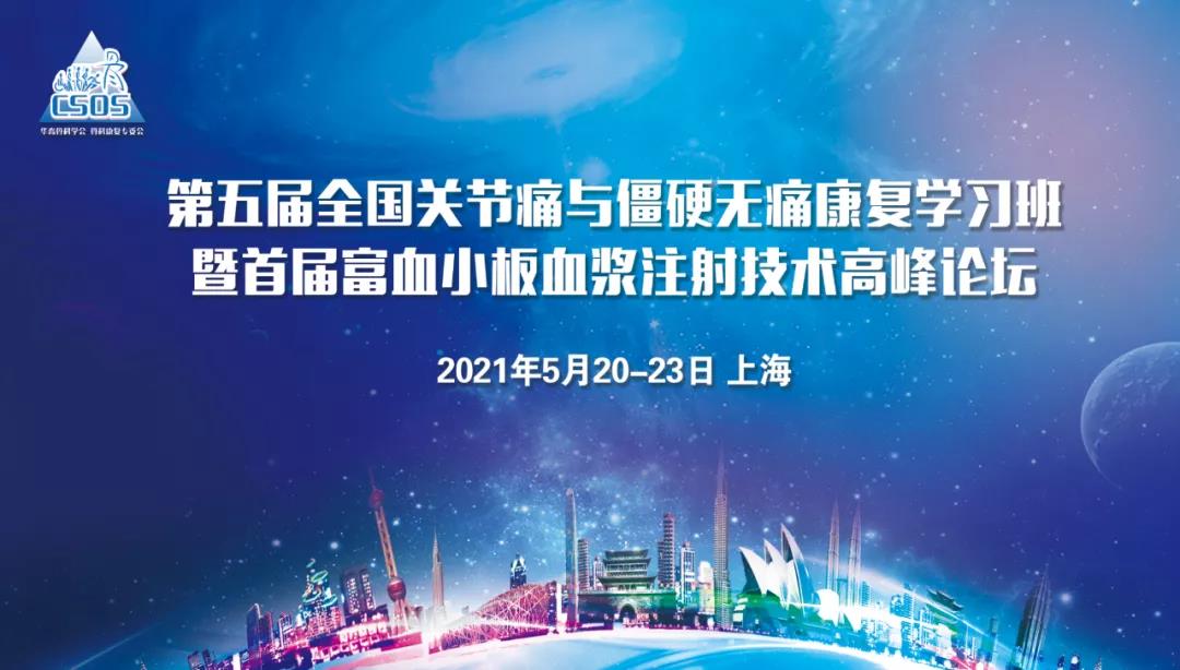 2021年5月21日,由上海交通大學醫學院附屬第九人民醫院主辦,上海瑞歐展覽服務有限公司承辦的“第五屆全國關節痛與僵硬無痛康復學習班暨首屆富血小板血漿注射技術高峰論壇”在上海交通大學醫學院附...